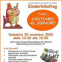 Comunitá Cattolica Italiana, Bad Homburg Kinderbibeltag Bambini CCI 17.11.2025 Kinderbibeltag Giornata biblica dedicata ai bambini: alla scoperta della Bibbia Tema della giornata: cantiamo al Signore!